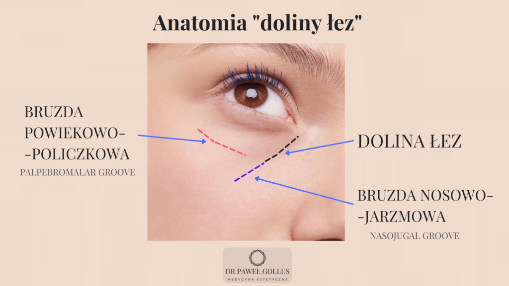 Doliną łez określamy zagłębienie w okolicy dolnej powieki. Ma ono swój początek przyśrodkowo i biegnie w dół – tak jak spływają łzy po policzku. Wynika ze zmian starzeniowych polegających na ubytku objętości tkanek tej okolicy.