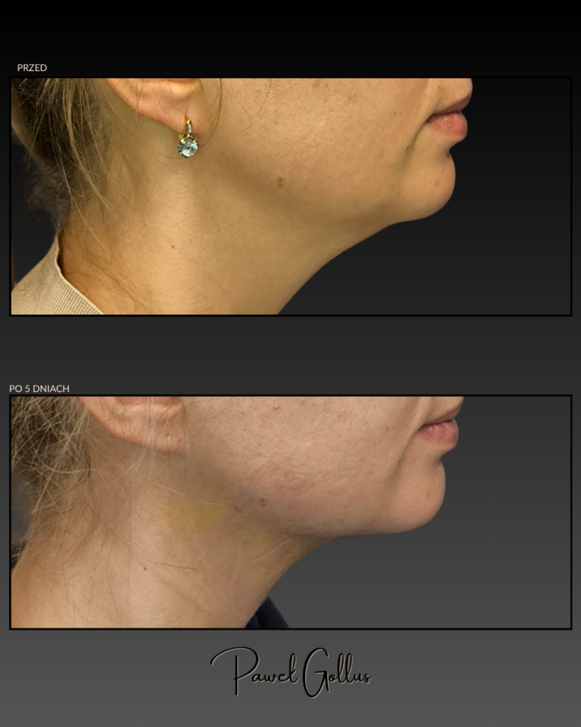 Zdjęcie przedstawiają efekt zabiegu u konkretnego pacjenta. Efekt może się różnić w zależności od indywidualnych cech anatomicznych, procesu gojenia, osoby przeprowadzającej zabieg oraz stosowania się do zaleceń pozabiegowych.