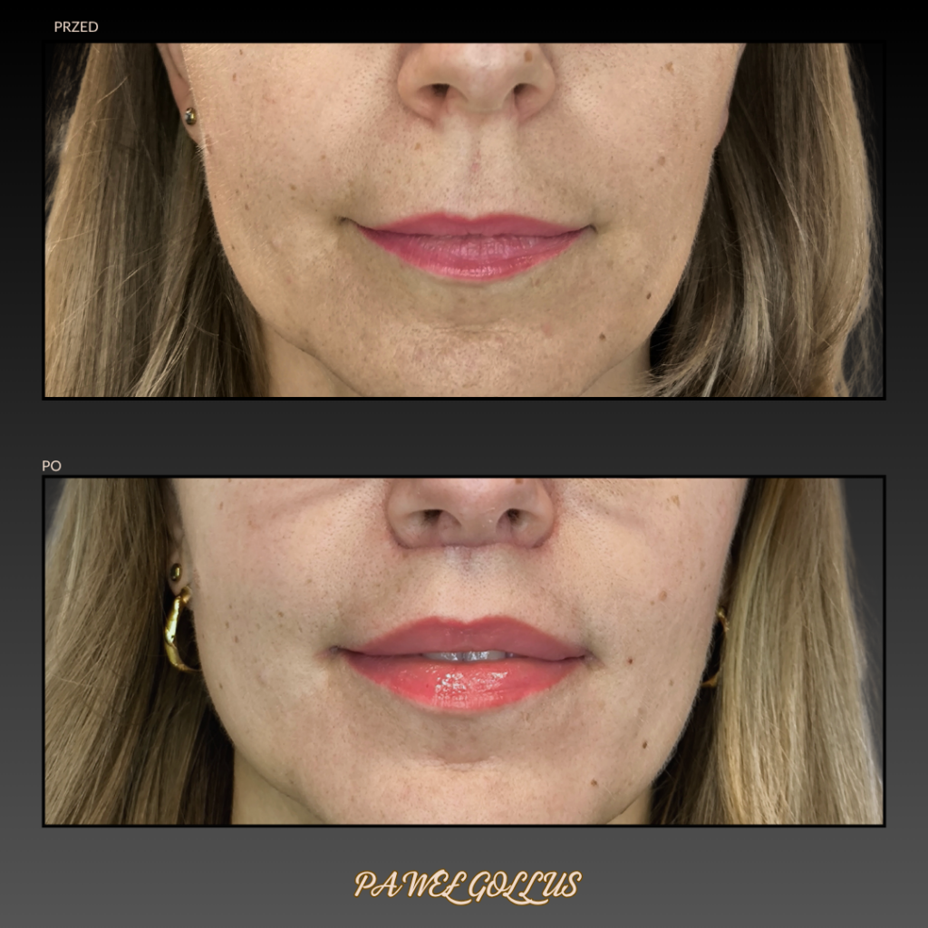 W przeciwieństwie do modelowania ust kwasem hialuronowym, Lip Lift nie polega na dodaniu objętości, ale na poprawie proporcji anatomicznych. Efekt jest trwały.