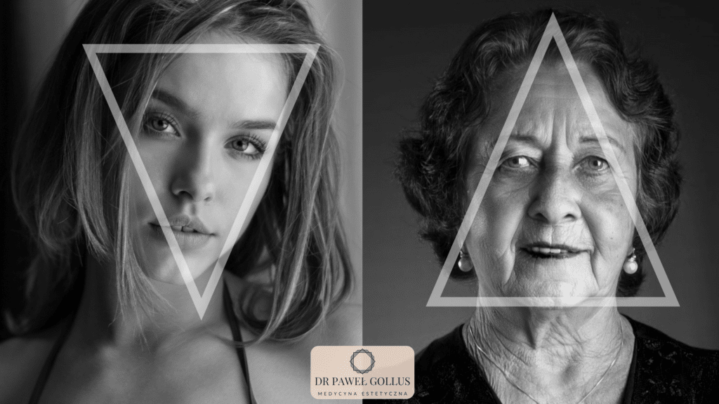 Wraz z wiekiem dochodzi do zaburzenia młodzieńczych proporcji twarzy. Młoda twarz charakteryzuje się kształtem w postaci odwróconego trójkąta. Na skutek ubytku objętości tkanek oraz ich opadania proporcje te stopniowo odwracają się.